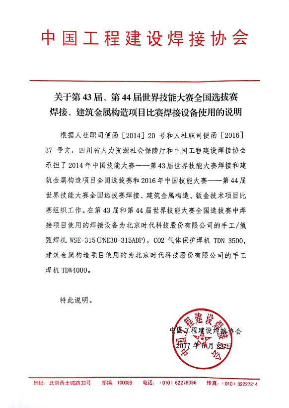 關(guān)于第43屆、第44屆世界技能大賽全國選拔賽焊接設(shè)備的使用情況