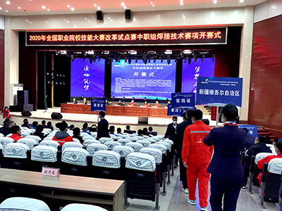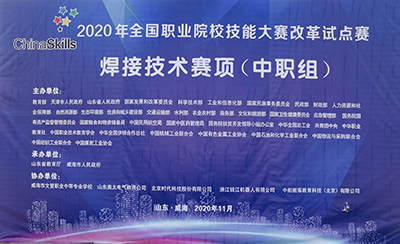 2020年11月24日,由中華人民共和國教育部、天津市人民政府、山東省人民政府等主辦的2020年全國職業院校技能大賽改革試點賽在歷史文化底蘊深厚的千年古縣山東威海市文登區正式開賽。11月24日早上,大賽組委會在文登職業中等專業學校禮堂舉辦了盛大的開幕式。山東省教育廳領導及威海市領導到會致辭。本次大賽的實操賽場設在學校的4#實習車間內。時代公司為大賽提供了全數字氣保焊機、全數字直流氬弧焊機、智能弧焊機人系統。比賽中選用時代設備參賽的選手達到85%以上。