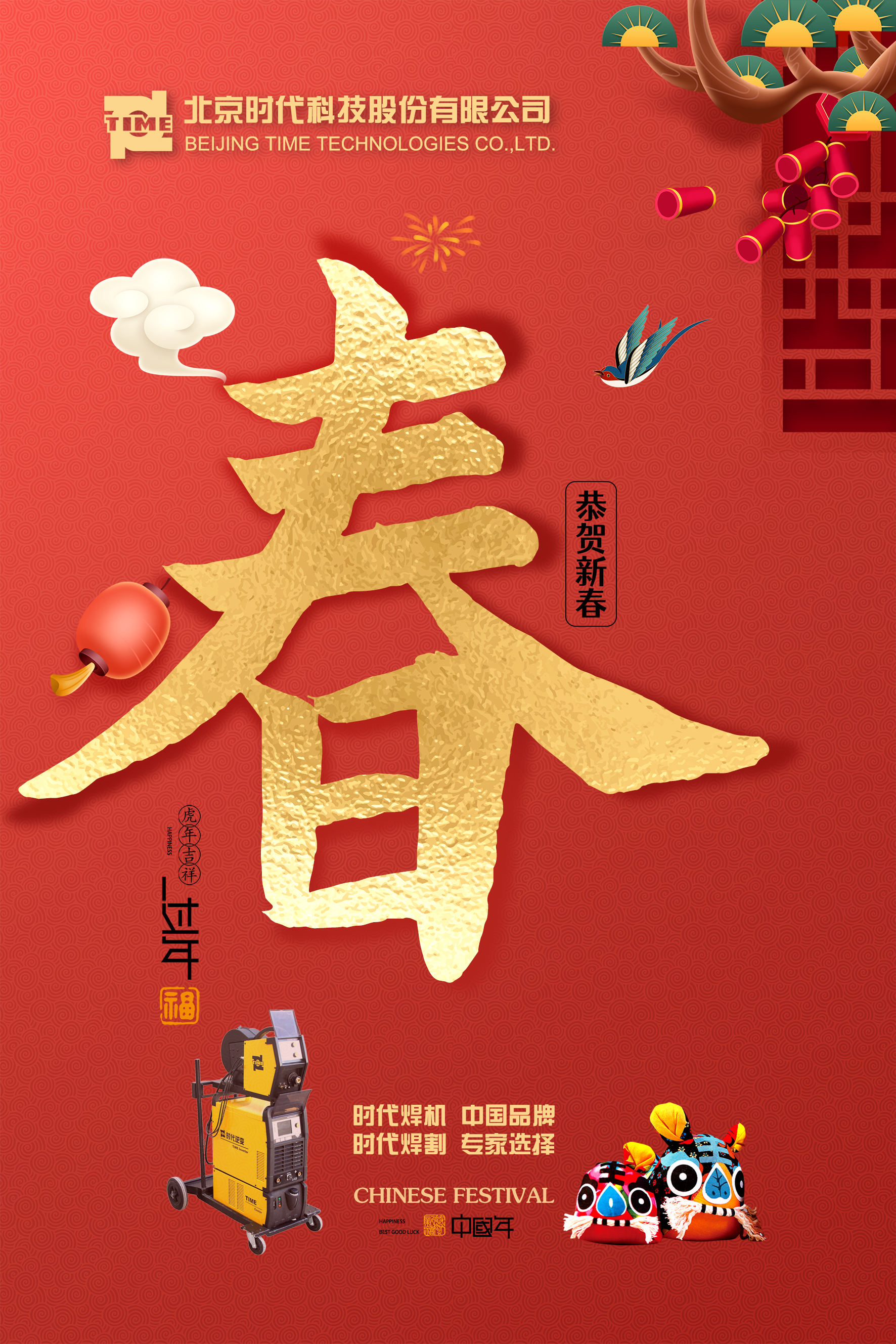 金牛辭舊歲,玉虎迎春來。在這辭舊迎新之際,全體時代人把最真誠的祝福送給您:祝時代焊機的新、老朋友們新春快樂!闔家幸福!萬事如意!
