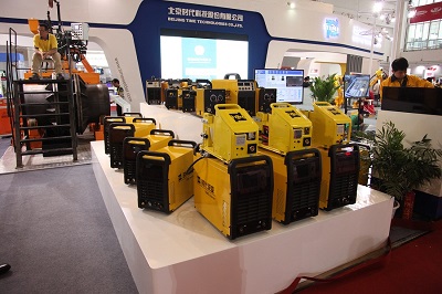 今年時代的展臺上展示了全新型數字化焊接電源、各類自動焊割設備及時代智能機器人。